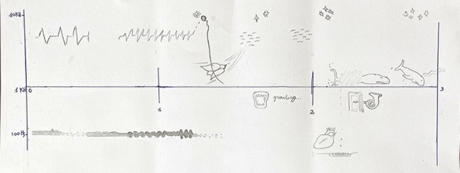 Dragonara is a piece from an upcoming acousmatic album that blends elements of concrete music, ambient, and drone. The project began as a creative game, interpreting a dream visually transposed by artist Iman Mahdy, whose artwork served as a musical score. The composition uses diverse field recordings—captured with binaural, contact mics, geophones, and re-amping—and transforms them using spectromorphological techniques. Each sound is treated as an organic entity, evolving and interacting within an imagined ecosystem, drawing inspiration from eco-acoustic composition. The title refers to a partially submerged tuff cave in Naples, the artist’s hometown. “Dragonara” was selected by ACSM116 to be performed at the Contemporary Computer Music Concert 2024 in Tokyo.